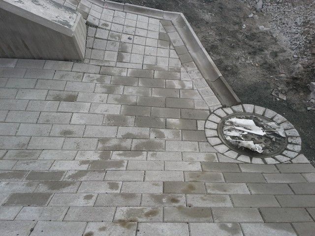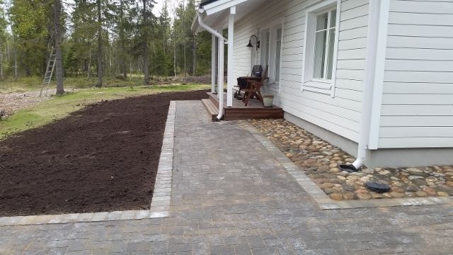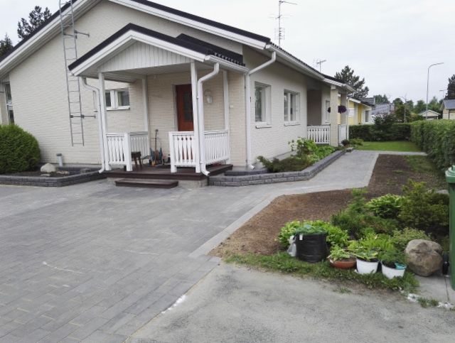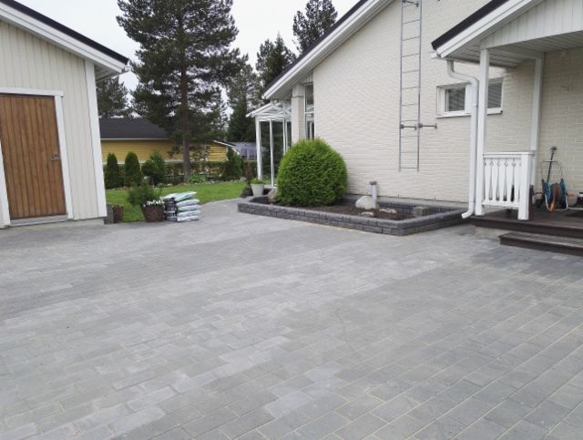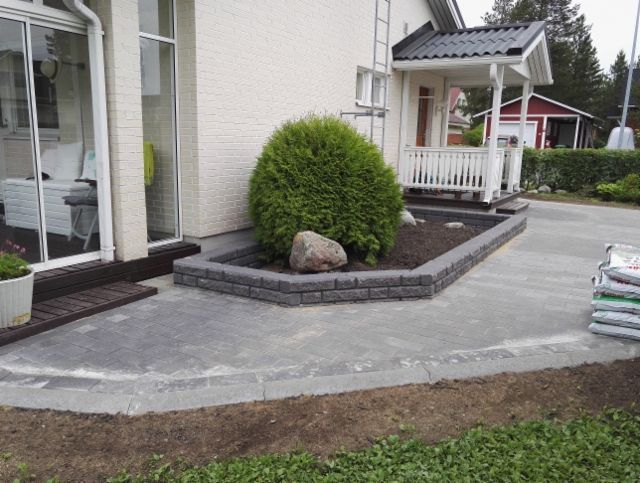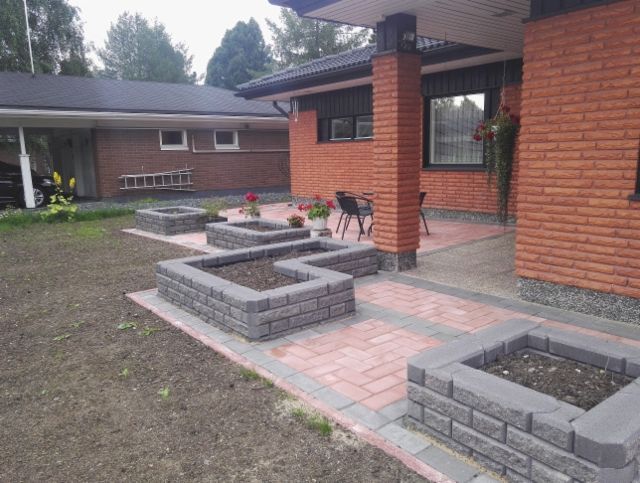 pihatyöt mm. kivityöt 700 x 700 -laattaa ja istutusaltaita